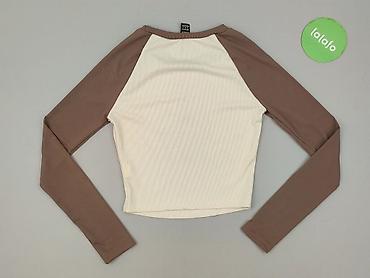 Bluzka damska SHEIN z długim rękawem, rozmiar S (EU 36 / US 4). - Krój: dopasowany, crop top; rękaw raglan. - Kolorystyka: ecru z zielonymi rękawami i lamówką; drobne, pionowe prążki na całej tka...Stan: