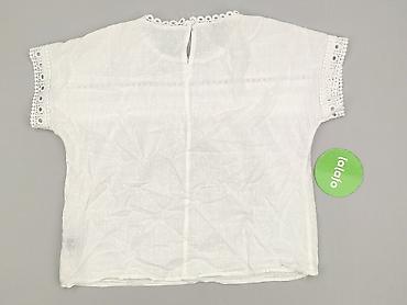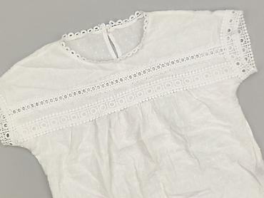 Biała bluzka damska z krótkim rękawem - Materiał: 100% bawełna (metka na zdjęciu) - Krój: luźny, lekki, przewiewny - Dekolt: okrągły, bogato zdobiony koronkową wstawką - Rękawy: krótkie, lekko opa...