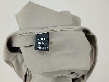 Bluzka damska SHEIN, rozmiar S (EU 36 / US 4). - Kolor: jasny beż/ecru, delikatnie prążkowana dzianina. - Fason: dopasowany korpus z półgolfem; długie, bufiaste rękawy z przezroczystego tiulu/chif...