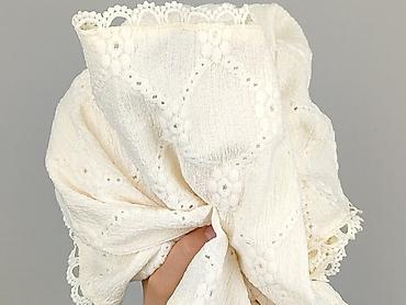 - Materiał: 98% poliester, 2% elastan – lekko elastyczny, tłoczony (crinkle) z ażurowym, haftowanym wzorem.