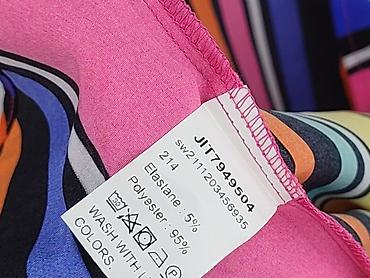 - Wzór: intensywne, wielobarwne pionowe pasy (róż, żółty, pomarańcz, niebieski, turkus, czerń, biel).
