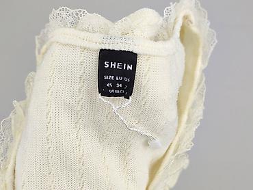 Bluzka damska SHEIN, rozmiar XS (EU 34, US 2). - Kolor: biały - Tkanina: 100% poliester, lekko prześwitująca, z fakturowanymi kropeczkami (plumeti) i pionowymi paskami - Krój: dopasowany, lekko ta...