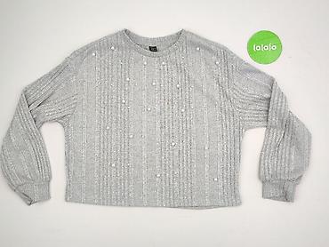 Szary sweter damski z wycięciami na ramionach i perełkami - Fason: luźny, lekko oversize, rękaw 3/4 - Dekolt: okrągły, ramiona z wycięciami (cold shoulder) - Ozdoby: aplikacje z drobnych perełek n...
