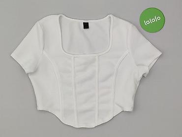 Biała krótka bluzka SHEIN dla kobiet - Marka: SHEIN - Rozmiar z metki: S (EU 36, US 4) - Fason: crop top, krótki do pasa - Rękaw: krótki - Dekolt: okrągły - Materiał: elastyczna, prążkowana dziani...