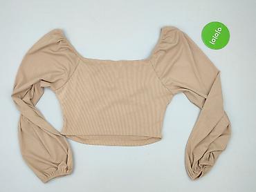 Beżowy prążkowany top damski z długim rękawem - Fason: dopasowany, elastyczny prążek - Dekolt: głęboki w serek z marszczeniem na środku, podkreślającym sylwetkę - Długość: do talii (krótszy top) -...