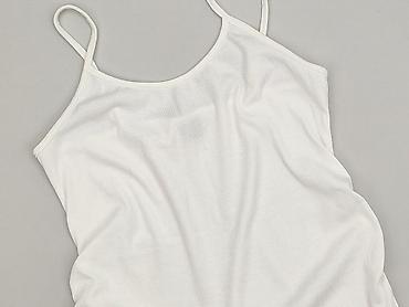 Biały, prążkowany top bez rękawów – damski - Fason: dopasowany, na szerokich ramiączkach, okrągły dekolt - Materiał: elastyczna, miękka dzianina prążkowana (komfortowa, dobrze dopasowuje się do sy...