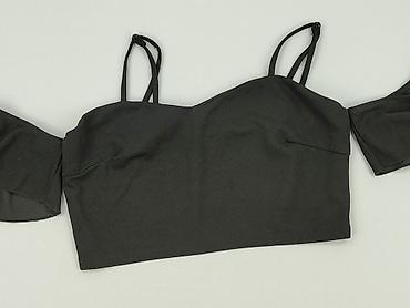 Czarny top crop SHEIN dla kobiet - Fason: krótki crop top z długim rękawem, luźniejsza linia z obniżonymi ramionami (nietoperz), zaokrąglony dekolt - Rozmiar z metki: EU 38 / US 6 - Materiał: 95% ...