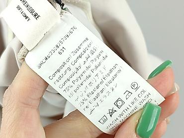 - Pielęgnacja (z metki): prać z podobnymi kolorami, pranie w pralce do 30°C; nie wybielać; suszyć w stanie rozwieszonym; prasowanie i czyszczenie chemiczne – zgodnie z piktogramami na metce