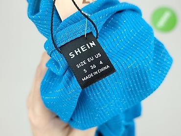Top/koszulka damska SHEIN - Krój: crop top, luźny, z krótkim rękawem - Rozmiar z metki: S (EU 36, US 4) - Kolor: intensywny chabrowy/niebieski - Materiał: dzianina prążkowana (miękka, elastyczna, ...