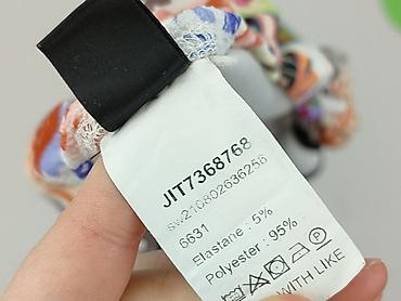 Top damski SHEIN, rozmiar S (EU 36, US 4). - Krój: krótki crop top z głębokim dekoltem halter i wiązaniem/sznurkiem na środku przodu, subtelne rozcięcie pod wiązaniem. - Wzór: abstrakcyjny marmurko...