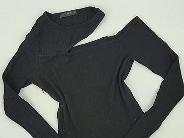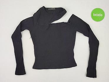 Czarny top damski SHEIN z długim rękawem - Model: JIM (etykieta producenta widoczna) - Rozmiar: S (EU 36, US 4) - Krój: krótki/cropped, dopasowany - Dekolt: asymetryczny, opadający na jedno ramię -...
