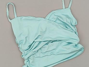 Top damski SHEIN - Model: krótki top na ramiączkach z falbaną u dołu - Kolor: chłodny błękit/niebieski - Rozmiar z metki: S (EU 36, US 4) - Materiał: 100% poliester - Fason: dopasowany w talii dzi...