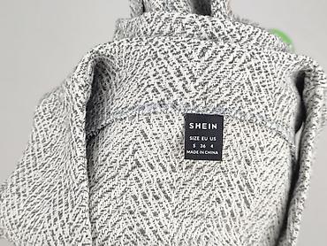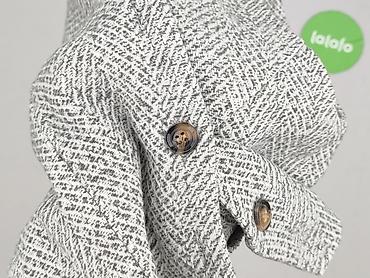 - Wzór/tkanina: drobny, tkany wzór jodełki w odcieniach szarości i bieli, fakturowana