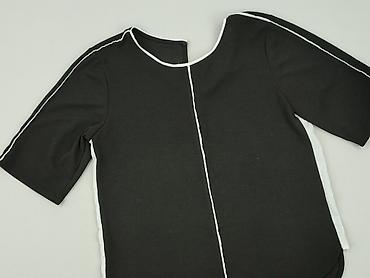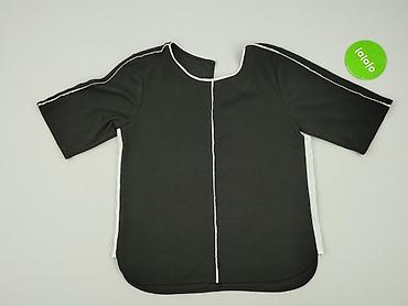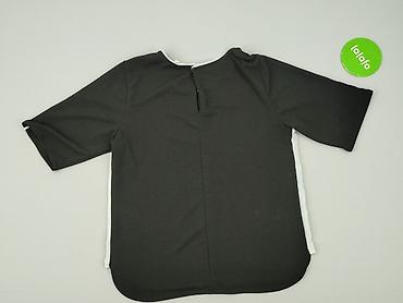 Bluzka damska z krótkim rękawem, rozmiar 40. - Kolor: czarny z białym, nieregularnym, kratkowanym wzorem (pędzlowe linie). - Krój: prosty, lekko luźny; zaokrąglony dół; okrągły dekolt. - Zapięcie: ...