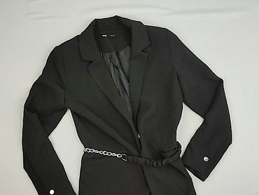 Marynarka damska Sinsay - Rozmiar: S - Fason: przedłużany, jednorzędowy bez zapięcia z przodu - Kolor: czarny - Materiał: 100% poliester (podszewka także poliestrowa) - Detale: klasyczne klapy, dw...