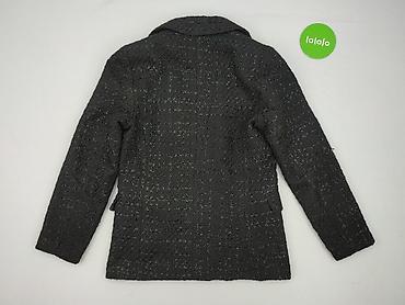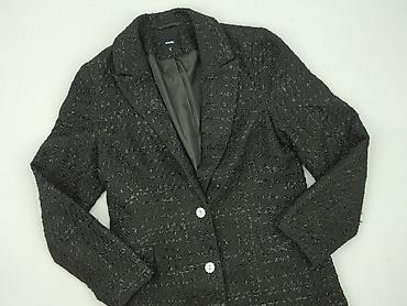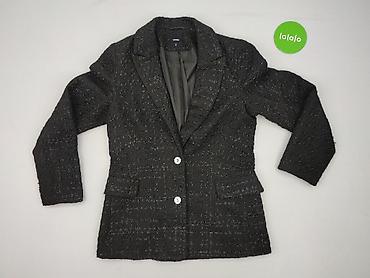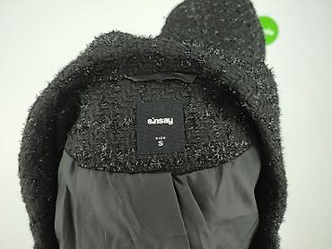 Damska marynarka Sinsay, rozmiar M - Klasyczny czarny kolor - Fason dopasowany, jednorzędowy na jeden guzik - Klapy w stylu garniturowym - Dwie kieszenie z przodu zapinane na metalowe zamki w sreb...