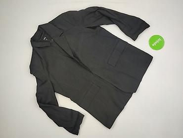 Marynarka damska H&M - Klasyczny czarny żakiet z klapami - Taliowany krój, jednozapięciowy – pojedynczy guzik z przodu - Dwie kieszenie z przodu (paspowane) - Podszewka w szare, pionowe pasy - Roz...
