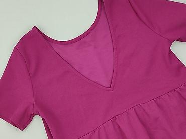 Sukienka Sinsay, rozmiar M. - Kolor: intensywny róż/fuksja - Fason: rozkloszowana, odcięcie w talii, dół z doszywanymi panelami tworzącymi delikatne falowanie - Rękawy: krótkie, bufiaste z gumką pr...