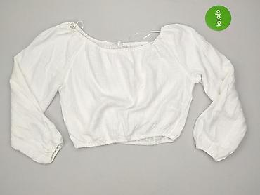 Biała bluzka damska Sinsay, rozmiar S. - Krój luźny, z opadającym rękawkiem typu nietoperz - Dekolt okrągły - Ozdobne ramiączka/ramiona wykończone koralikami i drobnymi aplikacjami - Miękka, cienk...
