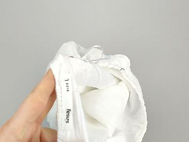 Bluzka damska Sinsay, rozmiar L - Kolor: biały - Materiał: lekka, karbowana tkanina z delikatną fakturą w drobne kropki/nubki - Krój: luźny, przewiewny - Rękawy: krótkie, szerokie, falbaniaste - De...