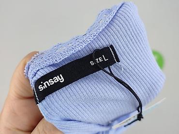 Bluzka damska bez rękawów - Kolor: jasny błękit z ciemnogranatową lamówką przy dekolcie i pachach - Rozmiar: L (EU L) - Fason: luźna, lekko marszczona z przodu, dekolt w kształcie litery V z małym...