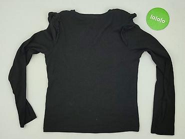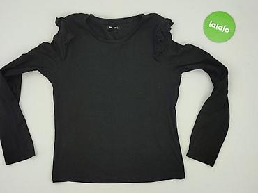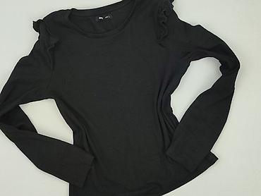 Czarna bluzka damska Sinsay, rozmiar S. - Krój: dopasowany, okrągły dekolt - Rękaw: długi - Detale: delikatne falbanki na ramionach, prążkowana dzianina - Materiał: 95% bawełna, 5% elastan – elast...