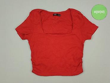 Czerwona bluzka damska Sinsay, rozmiar S - Fason: dopasowany, prążkowany materiał - Rękaw: do łokcia - Dekolt: półgolf - Kolor: intensywna czerwień - Skład: 95% bawełna, 5% elastan – miękka, oddyc...