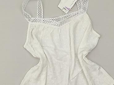 Biała bluzka damska Sinsay - Rozmiar: S (z metki) - Krój: luźny, prosty - Dekolt: w kształcie litery V z przodu i delikatne V z tyłu - Rękaw: krótki - Długość: do bioder - Materiał: 82% wiskoza, 1...