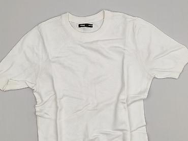 Biała dzianinowa bluzka damska Sinsay - Marka: Sinsay - Rozmiar: M (z metki) - Kolor: biały - Krój: dopasowany, z okrągłym dekoltem - Rękaw: krótki - Wykończenie: prążkowane ściągacze przy dekolci...