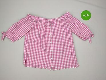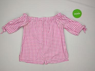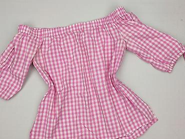 Bladoróżowa bluzka damska Sinsay, rozmiar M. - Fason: krótka bluzka typu hiszpanka z elastycznym dekoltem i dołem, puszyste bufiaste rękawy. - Materiał: 100% poliester. - Tkanina z delikatnym, kwi...