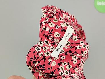 Bluzka damska Sinsay, rozmiar M - Krój: luźny, z dekoltem w kształcie litery V; tył delikatnie dłuższy. - Rękawy: długie, lekko bufiaste, zakończone mankietem na guzik. - Wzór: różowo‑łososiowy, k...