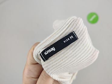 Bluzka damska Sinsay, rozmiar M. - Krój: lekko pudełkowy, z delikatnym ściągaczem przy dekolcie i dole - Rękaw: do łokcia - Wzór: poziome pasy w odcieniach bieli i brzoskwini - Dzianina: prążkowan...