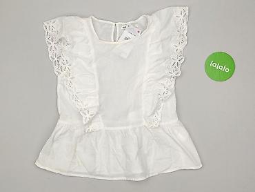 Biała, lekka bluzka damska z krótkim rękawem i koronką - Krój: luźny, lekko skrócony (crop), okrągły dekolt - Rękawy: krótkie, zakończone dekoracyjną koronką w kwiatowy wzór - Dół: koronkowa lamów...Stan: