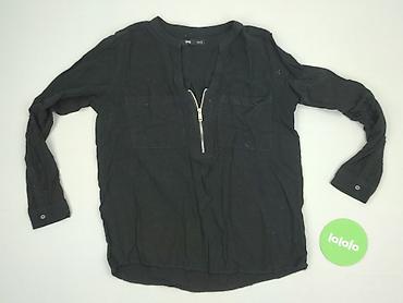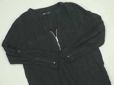 Bluzka damska Sinsay BASIC, rozmiar M. - Krój: z długim rękawem, zapięcie na guziki z przodu, delikatna stójka przy szyi. - Wzór: czarne tło w drobne kropki z kwiatowym motywem w odcieniach niebie...