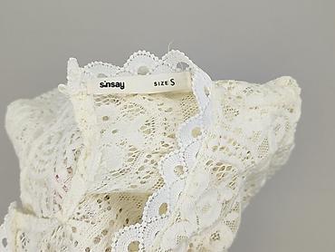 Bluzka damska Sinsay, rozmiar S - Kolor: biały - Materiał: 100% bawełna (metka w zdjęciach) - Krój: luźny, zwiewny - Dekolt: okrągły - Rękawy: krótkie falbanki z ażurową, haftowaną koronką w kwiat...