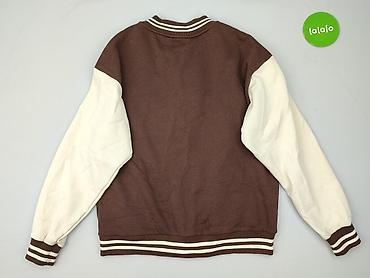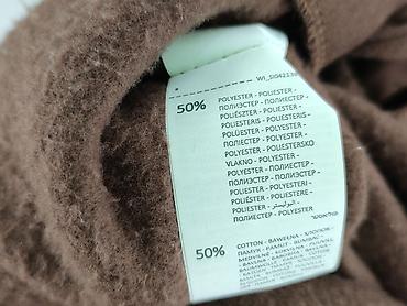 - Kolor: brązowy korpus + kremowe rękawy; ściągacze w paski (brąz/biel) przy kołnierzu, mankietach i u dołu