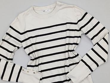 Sweter damski Sinsay, rozmiar S - Kolor: ecru/kremowy w czarne, poziome paski (styl marynarski) - Fason: luźniejszy, z obniżoną linią ramion - Dekolt: okrągły - Rękawy: długie, zakończone ściągacz...