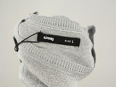 Sweter damski Sinsay, rozmiar L - Krój: klasyczny sweter z wyraźnym, prążkowanym splotem - Dekolt: w kształcie litery V - Rękawy: długie, zakończone ściągaczem - Kolor: jasnoszary/melange - Materi...