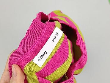 Sweter damski SHEIN, rozmiar M (EU 38, US 6). - Krój: klasyczny, z okrągłym dekoltem - Wzór: szerokie, pionowe pasy w odcieniach beżu i pudrowego różu - Splot: grubszy, strukturalny (dzianina o wy...