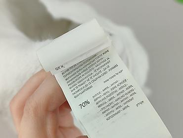 - Materiał: 70% akryl (pozostałe włókna – mieszanka syntetyczna; miękki, puszysty splot)