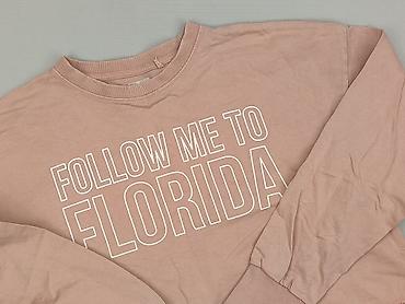Damska bluza crop Sinsay, rozmiar S. Kolor pudrowy róż, z nadrukiem „FOLLOW ME TO FLORIDA” z przodu. Krój skrócony, luźny, z długim rękawem i ściągaczami przy mankietach oraz przy dekolcie. Materiał: 100% bawełna – miękka, oddychająca, przyjemna w dotyku. Idealna do casualowych stylizacji, na co dzień i podróże. Nadruk w białym, wyrazistym konturze. Bez kaptura i bez kieszeni. Marka: Sinsay (metka wewnętrzna). Rozmiar z metki: S. Dla: kobieta.