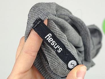 Dzianinowy top w paski Sinsay, damski - Rozmiar: S (z metki) - Krój: krótki top z krótkim rękawem, lekko boxy - Dekolt: półgolf/ściślejszy ściągacz przy szyi - Wzór: cienkie, czarne poziome paski ...