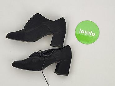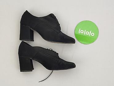 Czarne damskie półbuty na słupku z grubą platformą - Marka/model: Evidence (logo wewnątrz) - Rozmiar: 38 (oznaczenie na podeszwie) - Kolor: czarny - Cholewka: tekstylna - Wiązanie: sznurowane, 4 p...