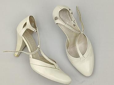 Czółenka damskie Gino Rossi – model slingback - Rozmiar: 36 (oznaczenie na podeszwie) - Kolor: beż/nude, lekko połyskujący - Cholewka: skóra naturalna lakierowana - Nosek: migdałowy, z fakturowaną...