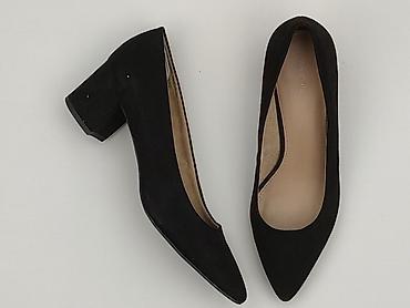 Czarne czółenka damskie na słupku, lakierowane - Marka: inscribe wewnątrz „MORE” - Model: klasyczne czółenka z zaokrąglonym noskiem - Kolor: czarny, wysoki połysk (lakier) - Obcas: stabilny słupek...