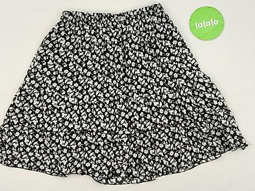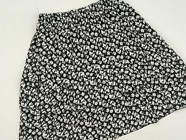 Czarna, lekka spódnica damska w biały, drobny kwiatowy print. Model na gumce w pasie, z delikatnymi marszczeniami i falbanami, zapewniającymi swobodę ruchów i kobiecy wygląd. Długość przed kolano (mini/krótka).