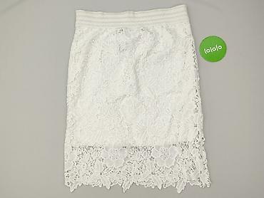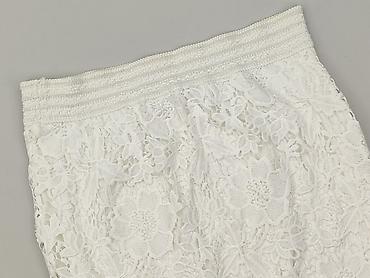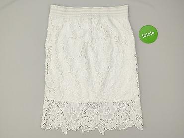 Biała spódnica damska z koronką i haftem kwiatowym - Krój: ołówkowy, długość przed kolano - Materiał: delikatna siateczka z gęstym, wypukłym haftem w kształcie stokrotek; podszewka w kolorze ecru/...