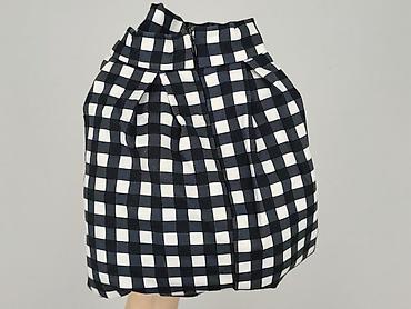 Spódnica damska Sinsay, rozmiar S. - Krój: mini, z przodem zapinanym na rząd białych guzików - Wzór: czarno-biała kratka (gingham) - Talia: marszczona „paperbag” z szlufkami i paskiem z tej samej ...