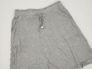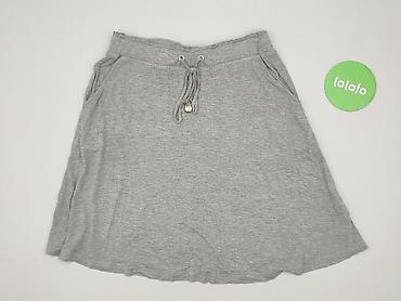 Szara, casualowa spódnica damska o długości do kolan, wykonana z miękkiego materiału przypominającego bawełnę. Posiada elastyczny pas dla lepszego dopasowania oraz praktyczne kieszenie z przodu, kt...Stan: