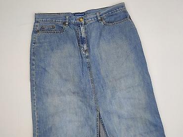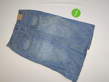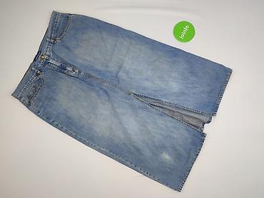 Spódnica jeansowa damska, rozmiar 40. - Krój: prosta, długość mini/tuż nad kolano - Kolor: klasyczny niebieski denim z delikatnymi przetarciami - Zapięcie: z przodu na suwak i dwa metalowe guziki ...